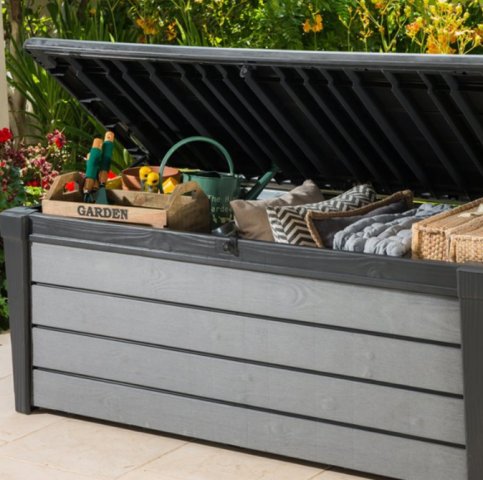 Ideale per riporre cuscini e attrezzi da giardino.