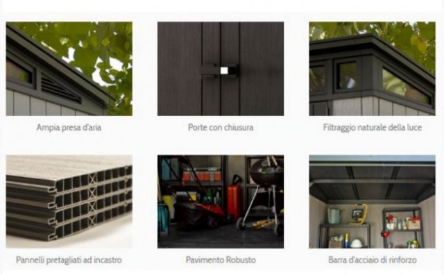 Questo le permette di avere la classica finitura effetto legno Keter, ma soprattutto di essere la prima cassetta in resina verniciabile adattando la casetta al VS. stile.
