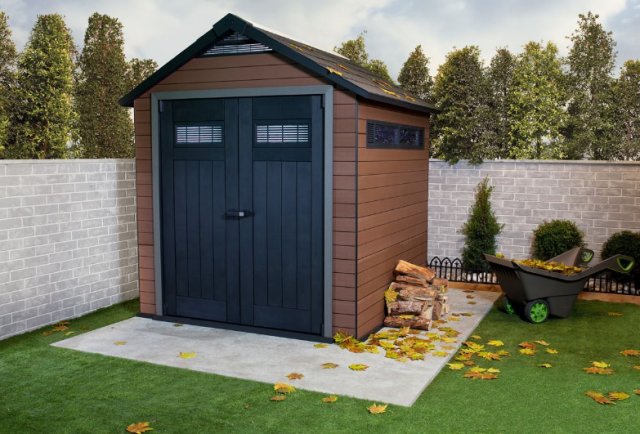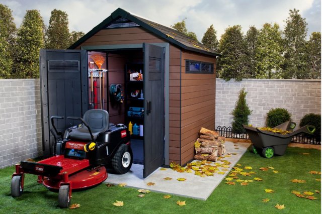 Dal tetto in tegole rinforzato in acciaio fino al pavimento per impieghi gravosi, Fusion 757 è costruito per durare nel tempo. È realizzato in un composito di legno-plastica e presenta una robusta struttura a doppia parete, nonché ventilazione su tutti i lati e doppie porte accessibili. Anche il Fusion 757 è costruito per essere elegante, con la bellezza naturale e la trama di un classico capanno in legno.