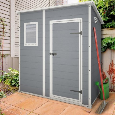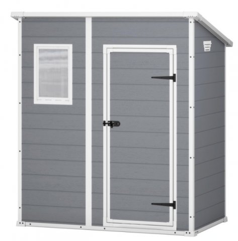 Casetta da giardino Pent 6x4 della ditta Keter, casetta modulare dotata di griglia di ventilazione e finestra fissa.