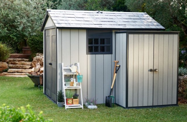 Questo capanno da giardino è la soluzione di archiviazione definitiva. Ampio e robusto, può contenere attrezzature pesanti e materiali da giardino grazie ai pannelli per pavimenti resistenti. Realizzato con doppie pareti DUOTECH ™rinforzate con nervature e materiali resistenti agli agenti atmosferici, il capannone è resistente e di facile manutenzione. Dispone inoltre di pareti DUOTECH ™ verniciabili, staffe regolabili per opzioni di scaffalatura, ampie porte doppie e una pratica soglia inclinata.