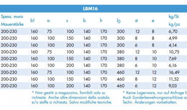 con staffa doppia PANALEX LIGHT-BOX doppelte Bügel Elemento Light Box certificato secondo DIN EN 1992-1-1 (Eurocodice 2) e “foglio informativo DBV piegature dei ferri di armatura e richieste alla cassetta metallica, edizione gennaio 2011”. Qualità acciaio d´armatura BSt 500 WR secondo DIN 488. Lunghezza scatola: 125 cm Altezza scatola: 30-60 mm LBM10, LBM12, LBM14, LBM16: 120 pz./paletta LBM19: 80 pz./paletta LBM22: 60 pz./paletta