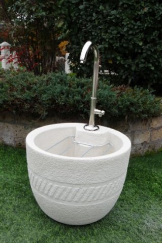 QUESTA FONTANA VIENE VENDUTA CON IL RUBINETTO IN OTTONE NICHELATO, PER DARGLI UN DESIGN PIU' MODERNO E RAFFINATO; COSI' SI HANNO TUTTI COLORI CHIARI SULLO STESSO TONO.