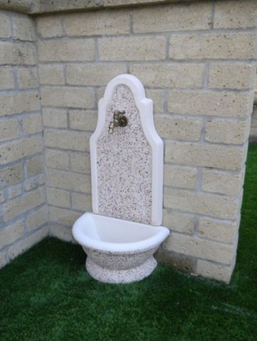 Il Lavello Rodano, realizzato in pietra ricostruita, è disponibile nei colori Ghiaino di fiume (grigio naturale), Fantasia di Marmo (bianco-rosa-nero), Multicolor (bianco-rosa-nero micro) e Rosa roccia; il colore di ogni elemento presenta sfumature uniche. Questo lavello è specifico per appoggio a muro. Si lava facilmente e sulla superficie non si creano alghe e muschio; inoltre resiste all'umidità, ai raggi UV ed agli agenti atmosferici.