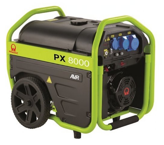 Il generatore elettrico Monofase a benzina PRAMAC PX8000 è un prodotto ideale per portare l'energia elettrica ovunque sia necessaria. Grazie al manico ripiegabile ed alle ruote di grande diametro può essere trasportato agevolmente anche su terreni leggermente sconnessi.