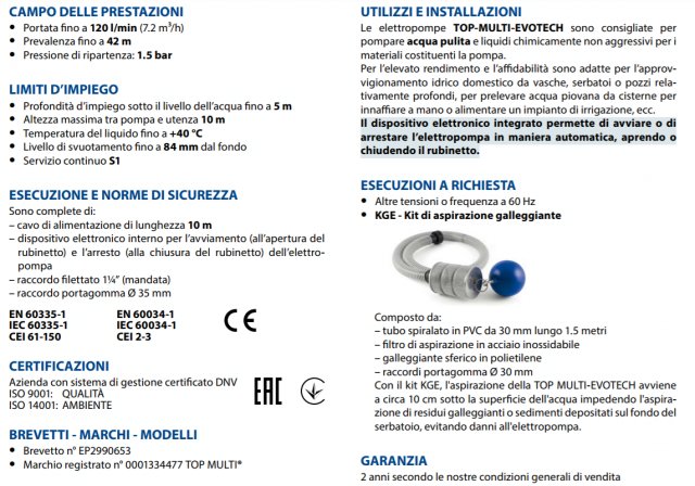 TOP MULTI-EVOTECH Elettropompe sommergibili multigiranti automatiche