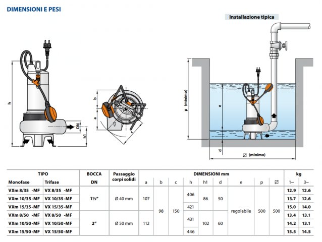 VX-MF "VORTEX" Elettropompe sommergibili per acque luride