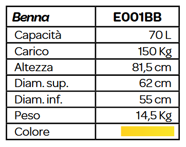 Il contenitore in polietilene, ha una capacità di 70L ed è indicato per il trasporto, lo stoccaggio e lo scarico di ogni tipo di materiale.