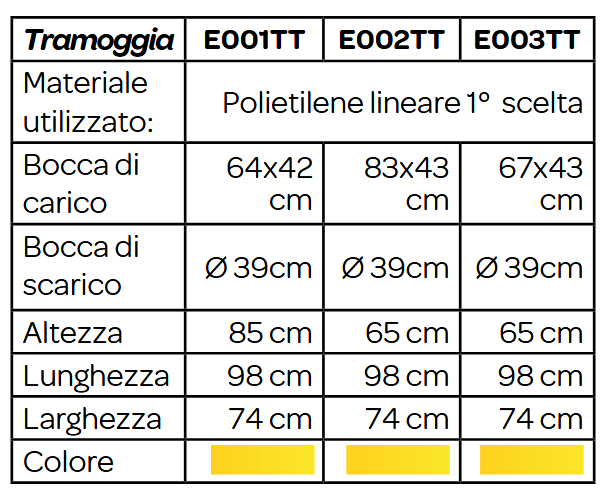 La tramoggia è impilabile fino a raggiungere 25 pezzi per pallet.